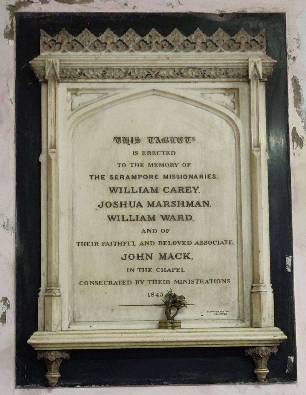 A minute walk from the college there is the Old Mission Chapel (or Church) built by Carey, Marshman and Ward. After they reached Serampore they bought a land for the present Baptish Church for Rs 6000 from the Governor's nephew, although they had only half at their disposal. The rest was made up from the money they brought from England, by bills on England and by a loan. This Chapel served as the first home & worship of Serampore trio and their associate John Mack.